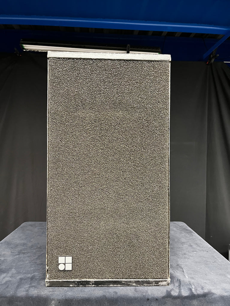 The Q7 is a 75° x 40° passive 2-way loudspeaker housing two 10" LF drivers and a 1.3" HF compression driver with a rotatable constant directivity horn and a passive crossover network. The two 10" neodymium LF drivers are positioned in a dipolar arrangement providing exceptional vertical dispersion control with the nominal angle being maintained down to 400 Hz. The Q7 with the horn rotated is used to mount the loudspeaker horizontally where space is limited, or the maximum horizontal pattern control is needed and when added to the bottom of Q1 arrays. The Q7 can be used as a stand-alone full range system, in combination with other Q-Series cabinets ground stacked or mounted on a high stand with a swivel bracket. They can also be combined in flown array systems. The Q7 cabinet is constructed from marine plywood and has an impact resistant paint finish. The front of the loudspeaker cabinet is protected by a rigid metal grill, covered with a replaceable acoustically transparent foam. The cabinet incorporates a pair of handles and mounted on the rear panel are two NL4 connectors wired in parallel.
