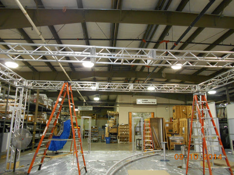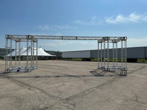 18“ x 12“ manufactured the same way as 12“ x 12“, but has an added advantage due to its width of 18“, of being able to accommodate 2 lighting bars back to back. The truss is also slightly stronger over longer spans. It is made from 6061T6 or 6082T6 alloy 2“ x 0.125“tubes for the main chords and 1“ x 0.125“ tubes for the diagonals. The truss can be used with Ground Support System with suitable sleeve blocks.