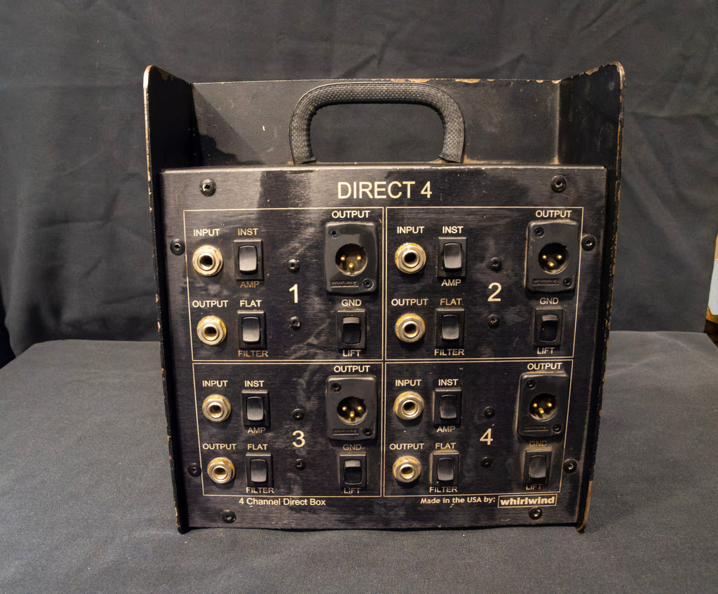 The DIRECT4 is a four channel, passive direct box from Whirlwind that converts unbalanced line, instrument or speaker level signals to low impedance balanced microphone levels, which are then suitable for imputing to a console or microphone preamp.